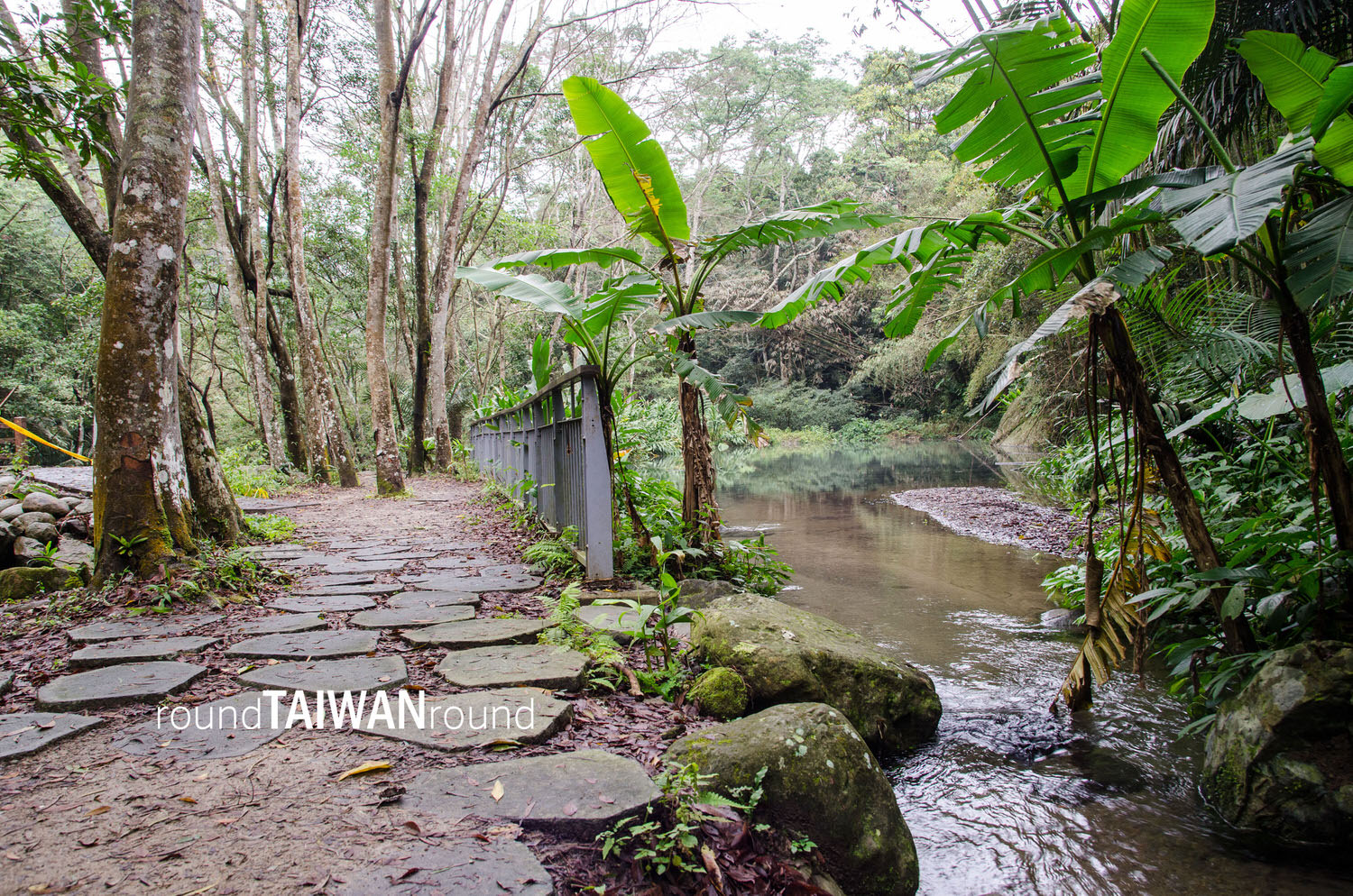 This cold spring was privately owned until the owner decided to share this hidden gem with the public and allowed the government to build up a trail to welcome the incoming visitors. This is a secluded place that Google Maps doesn’t want you to see yet, so try to find Nan Juang Jing Hwa Guesthouse (南庄晶華民宿) on the map. The entrance of the trail is just around the corner, and parking is available. The three-hundred-meter-long route is smooth enough without too many steps. When you reach the end of the cold spring, you will find yourself walking on a flat stone slab path. It will be a leisurely stroll for everyone regardless of age.