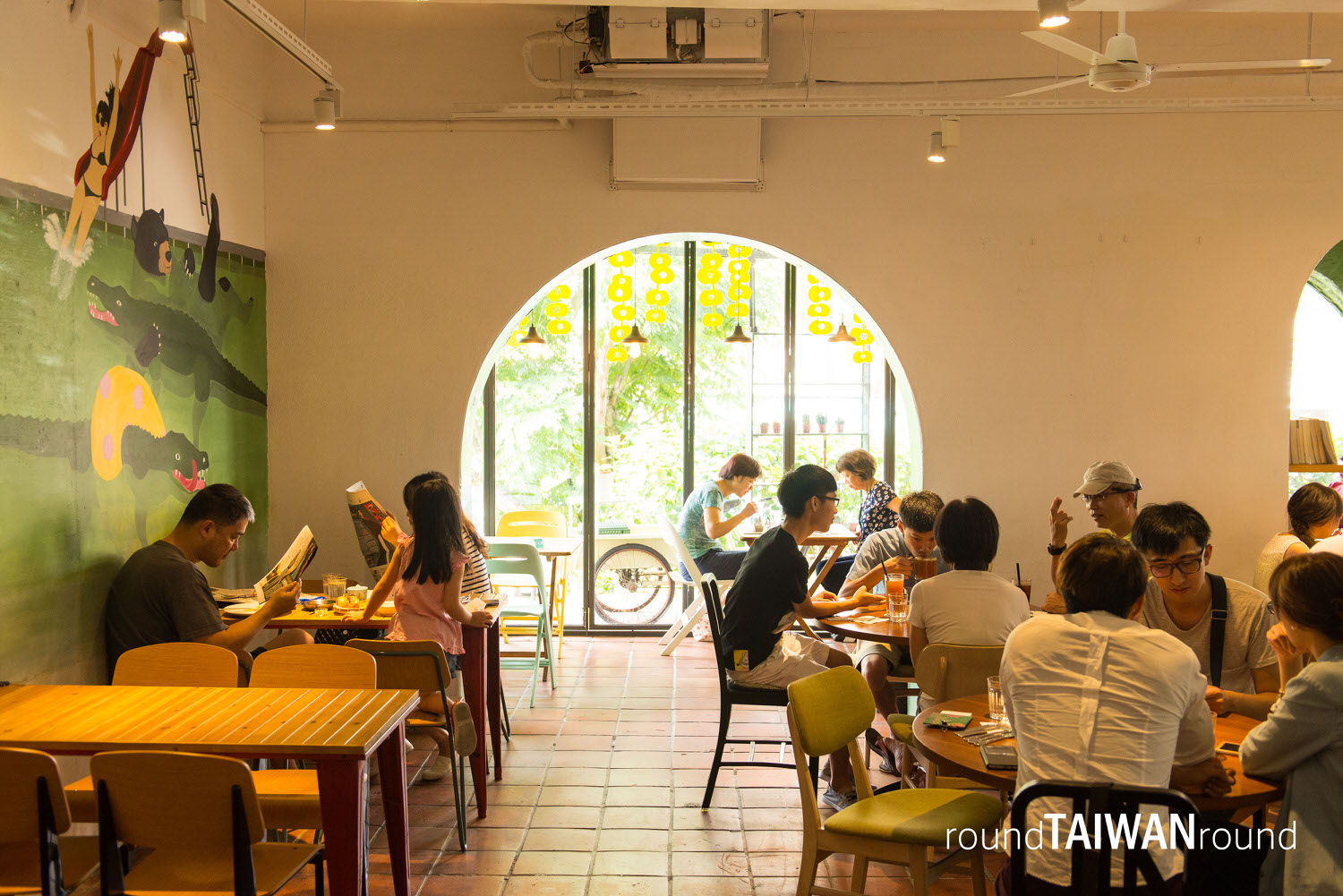 In Taipei, there are several branch stores of Good Cho's, a brand that gains popularity with coffee, bread, and creatively designed products. Good Cho's now runs a two-story cafe with a courtyard in Tianmu, a place taken up by rich men and foreigners. Like other Good Cho's stores, the decor of the cafe is based on natural colors, converting the original housing into a place like a fairy tale illustration. A sunglass-wearing giraffe is painted on the door, and the walls are decorated with crocodiles and bears playing together in a swimming pool. Moreover, sunlight comes in naturally through large floor-to-ceiling windows. Having your breakfast along the window and watching nearby residents pass by, you start to wonder if you are still in the busy, fast-paced Taipei City. Because there is no MRT to bring crowds of people here, and also the cafe boasts a spacious dining environment, it attracts lots of parents to bring their kids here, where they can read the newspaper while sipping juice. Groups of friends sitting around the table swipe their phones while talking; guests randomly pick up a magazine to browse in the relaxing music. The time spent in Good Cho's passes in a blink of an eye. The brunch and drinks served here are better than the average ones, and the jam, tea leaves, and biscuits displayed on the shelves are relatively healthy. No wonder guests have kept visiting the cafe since its opening.